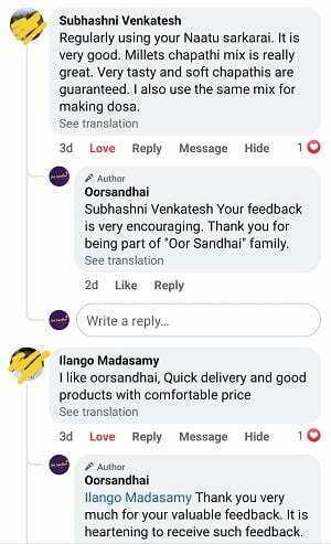 I appreciate that Oor Sandhai helps farmers to sell naturally grown native products such as Natural Jaggery to retail consumers directly.