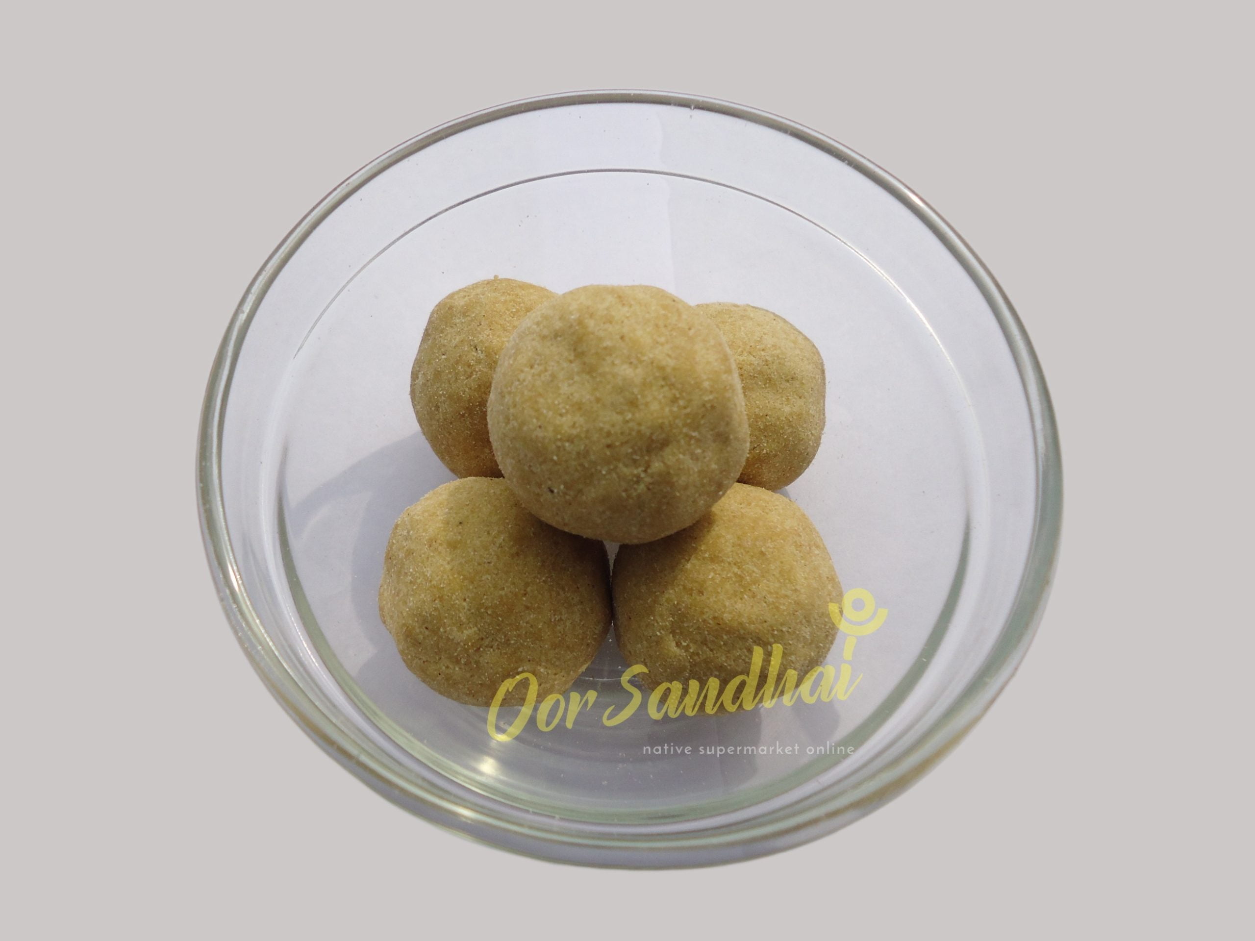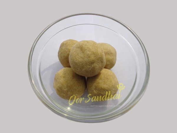 • The Thinai Laddus are made with Foxtail Millet, Groundnuts, Moong Dal, Country Cow Ghee, Jaggery, and Cardamom.