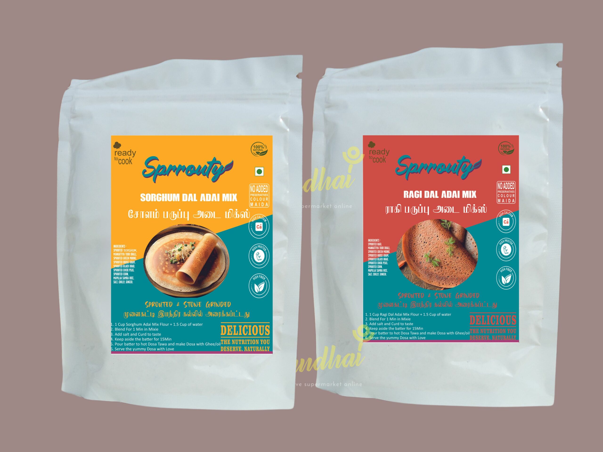 Sprouted Sorghum & Ragi Adai Mix Combo | முளைக்கட்டிய சோளம் அடை மிக்ஸ் (450g) & ராகி அடை மிக்ஸ் (450g)